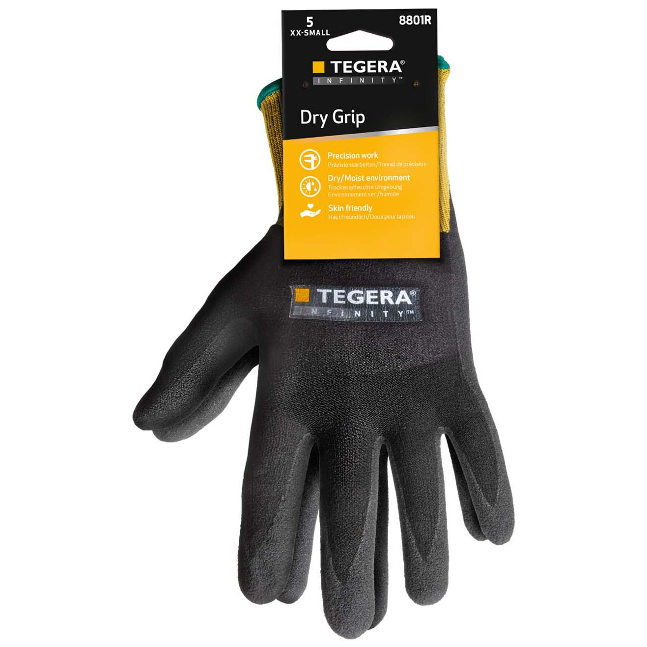 Syntethandske. Handflatedoppad. Tål kontaktvärme upp till 100° C. Vatten- och oljeavvisande innerhand. För monteringsarbeten. Hög kvalitetsnivå på skydd, bra fingertoppskänsla, smidig, slitstark, bra grepp i oljiga miljöer, extra bekväm.