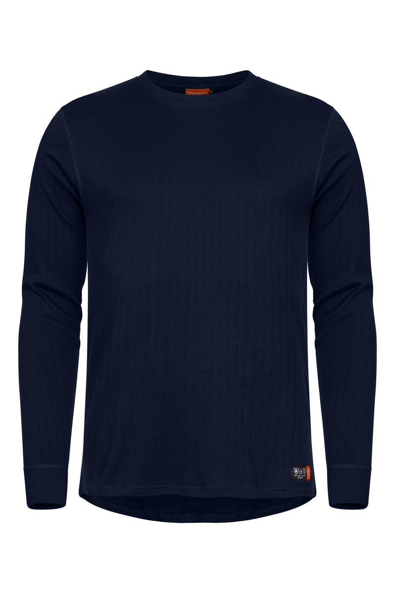Metallfri och inherent flamskyddad långärmad undertröja i mjuk trikå där 50% av bomullen är återvunnen. PFAS-fri.