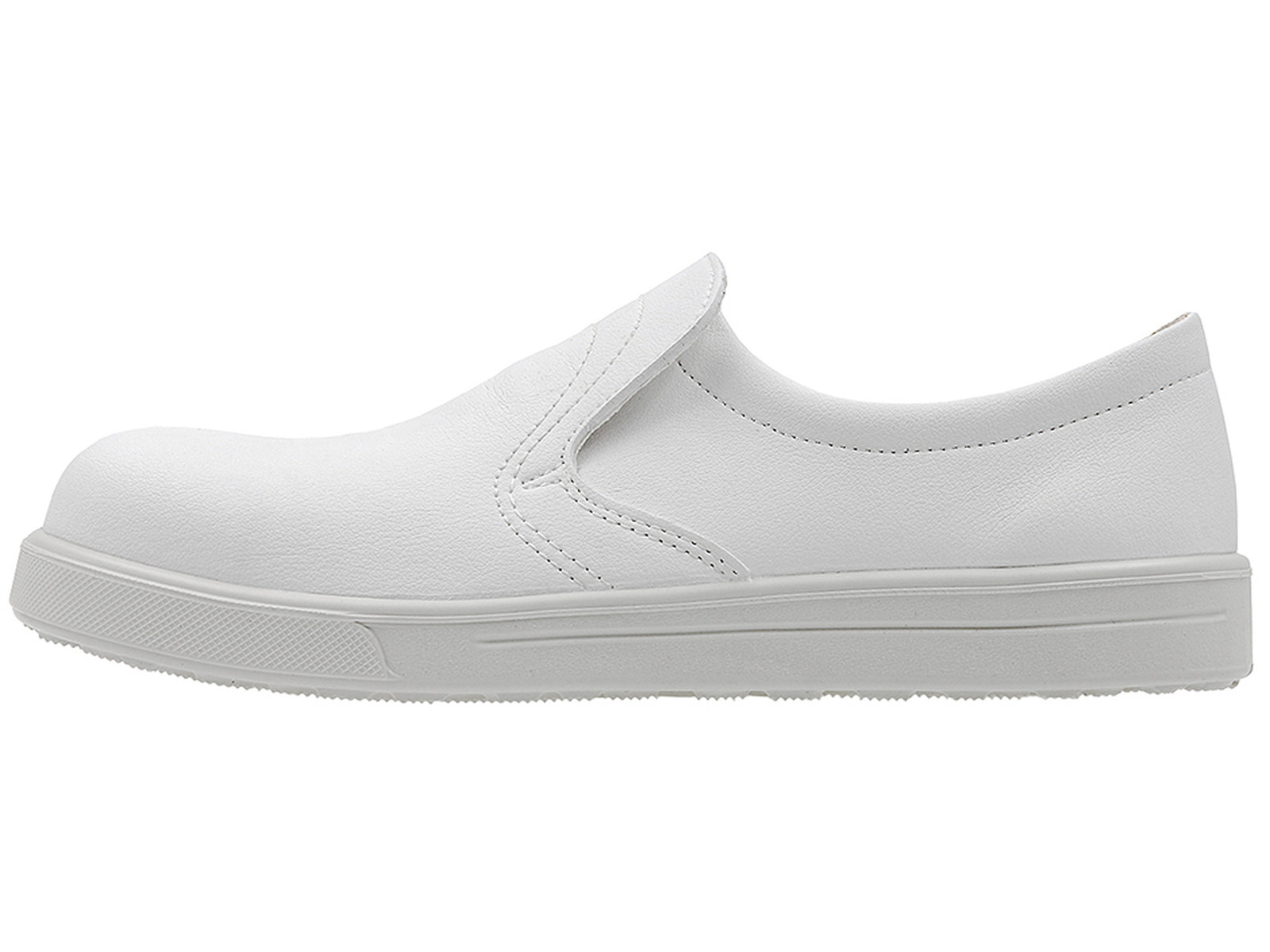 Skor tillverkade av vit mikrofiber för förhållanden som ställer höga hygienkrav.