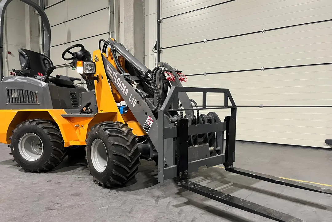 Multiloader L10 kan utrustas med pallgafflar, skopa och annan frontutrustning för att anpassas efter just dina behov.