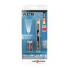 Professionell ficklampa i pennficksformat. Robust och greppvänlig yta i aluminium. Höljet är damm- och stänkvattenskyddat (IP54). Stor strömbrytare gör lampan enkel att använda även med en hand, eller med handskar. Optimerad för vardagliga användningsområden. Effektivt reflektorsystem. Lystid ca 4 timmar, ljusflöde på upp till 130 lumen. Inklusive 2 st AAA-batterier. Blisterförpackning.