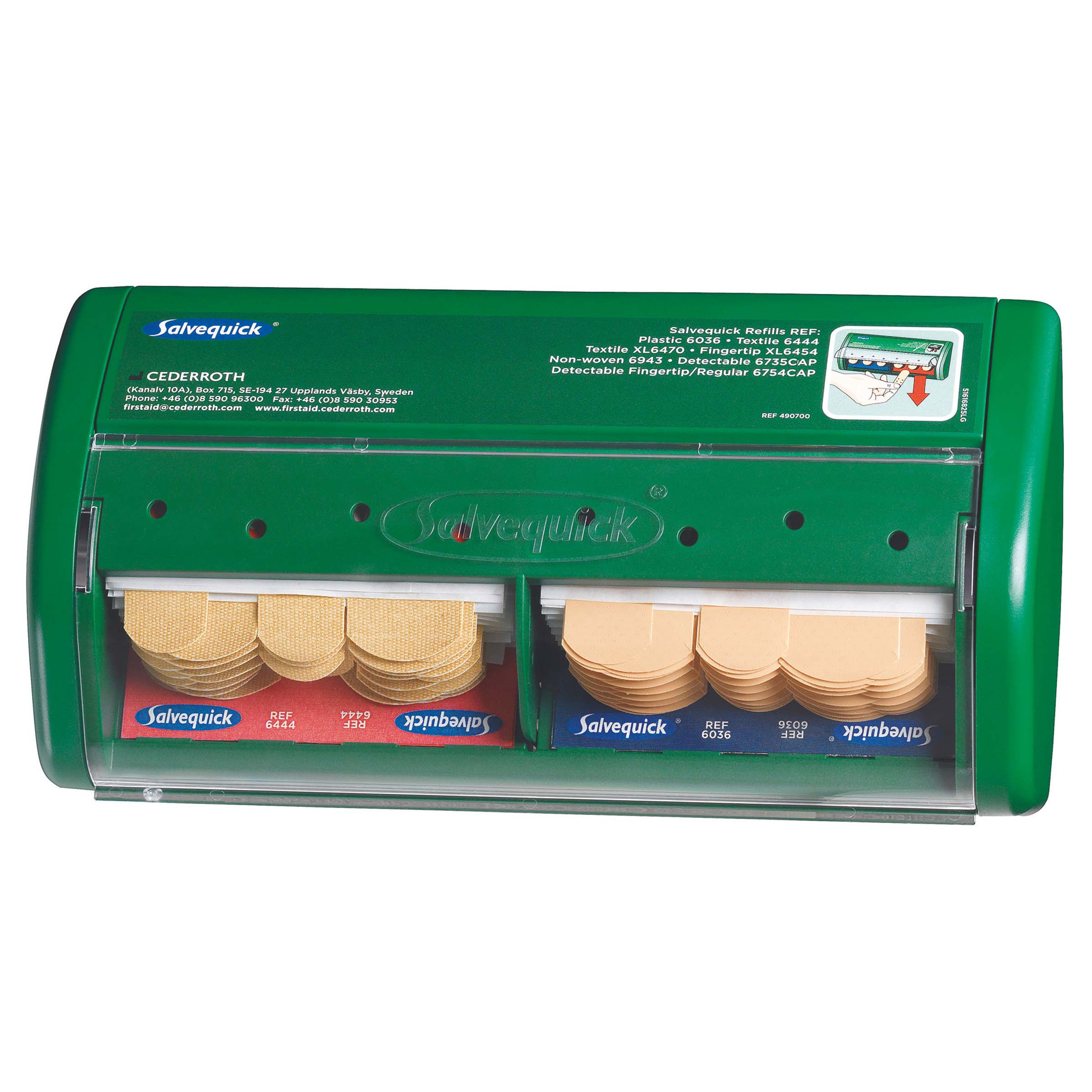 Med transparent lucka som skyddar mot damm och fukt. Plåstren dras nedåt för att undvika att smutsa eller blöda ner övriga plåster. Innehåller: 40 st Textilplåster (6444), 45 Plastplåster (6036) och 1 st nyckel.
