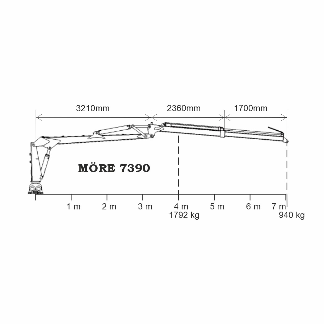 Skogsvagn 11 ton med 7,3 meters kran, kraftig dubbelram, ramstyrning, lång lastyta, boggie, teleskopiska stödben, snabbkopplad kran.