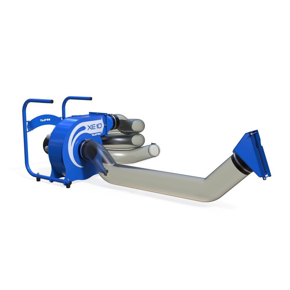 Drivs med el 220V från eldriftsvagnens uttag (artnr. 1O4133) eller vanligt 220V jordat el-uttag. 2 m sugslang Ø140mm samt en 5 m tryckslang Ø120mm samt slangklämmor medföljer.