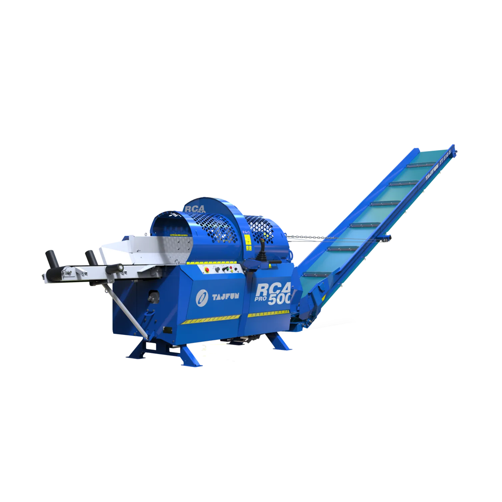 Vedprocessor med hela 25 tons klyvkraft, snabbgående klyvkolv, 50 cm stockdiam, 8-dels klyvyxa, Joystickmanövrering, lättåtkomliga reglage, enkel omställning arbets/transport-läge m.m.