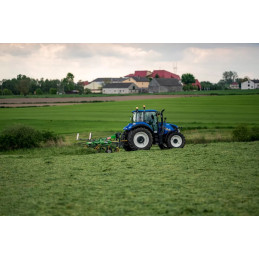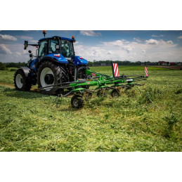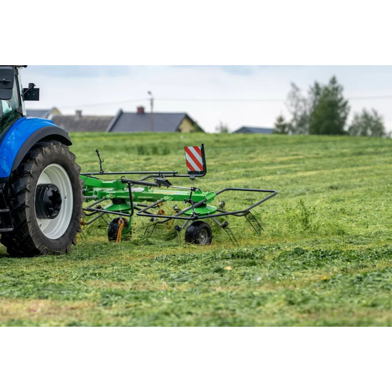 Pivothjulet följer markens ojämnheter och håller räfspinnarnas avstånd till marken konstant.
