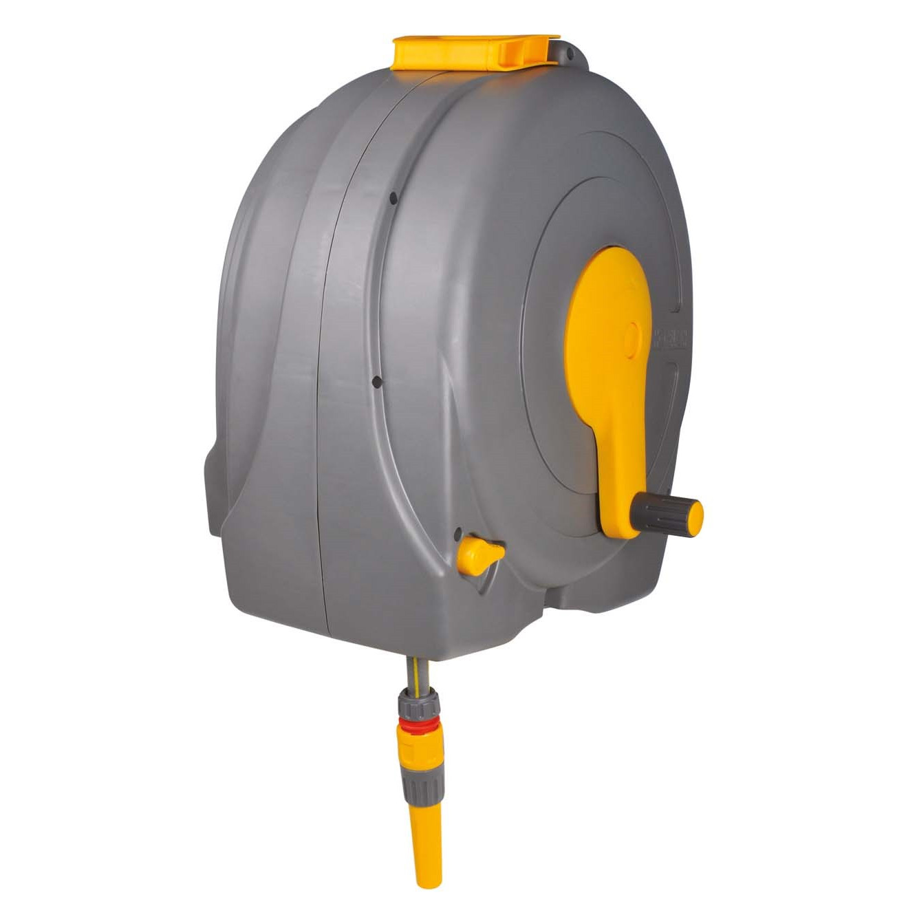 Självskiktande uppvindningsbart slangsystem som ger en jämn fördelning av slangen vid upprullning. Inkl. 40 m/12,5 mm slang, kopplingar, fästen och tillbehör. Väggvindan är monterad.